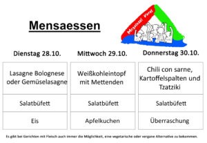 Mensaplan vom 28. bis zum 30. Oktober 2025