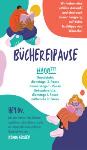 unsere Bücherei und natürlich unsere Bücher warten nur auf Euch. Ob groß, ob klein, für alle Altersklassen sind viele spannende, aufregende und informative Bücher vorrätig. Kommt zu den verschiedenen Zeiten einfach vorbei…