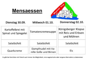 Mensaplan vom 23. bis zum 25. September 2025