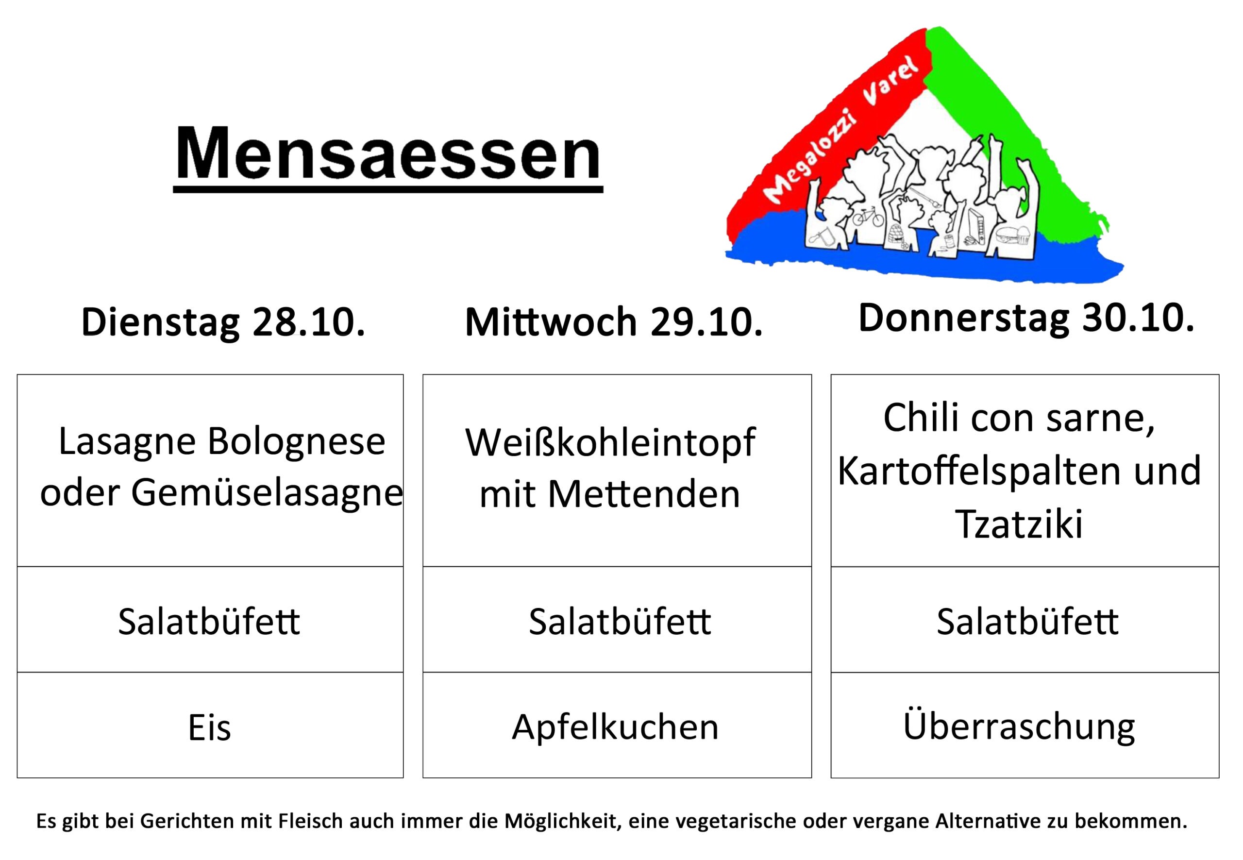 Mensaplan vom 28. bis zum 30. Oktober 2025