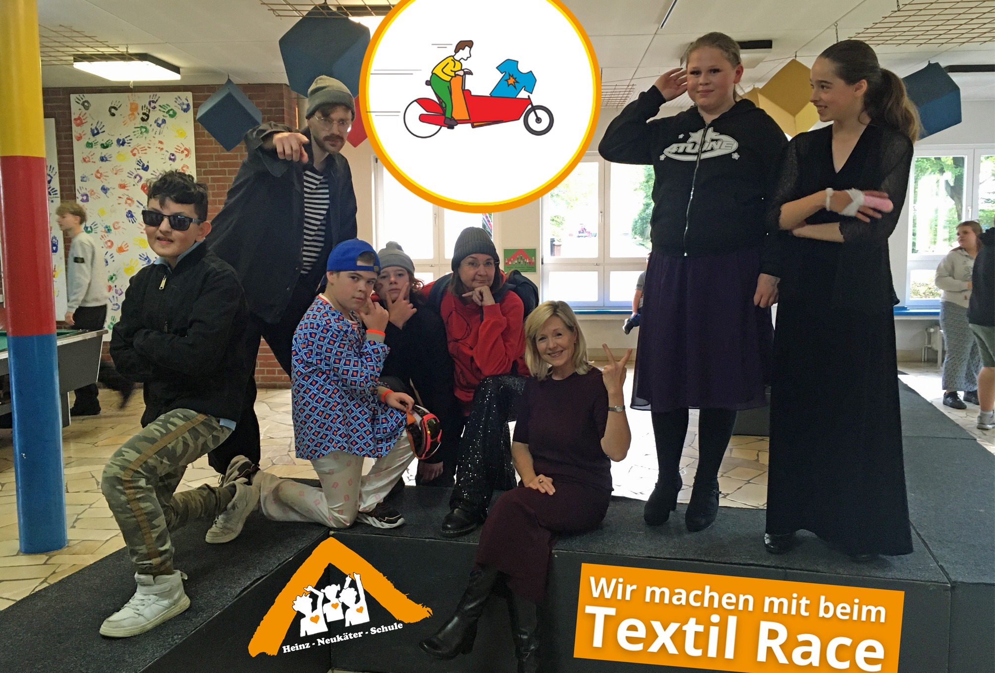 Was für ein wunderbares Projekt, was für eine tolle Show. Die 6. Klassen haben alte Kleidungsstücke in Massen gesammelt und mitgemacht beim TEXTIL RACE. Viele dieser Klamotten wurden bei einer kunterbunten Modenshow sehr kreativ und lebendig präsentiert. Am Ende durften sich alle Schülerinnen und Schüler ein Teil aussuchen. Eine prima Idee und eine großartige Werbung für nachhaltiges Denken und Handeln…