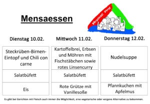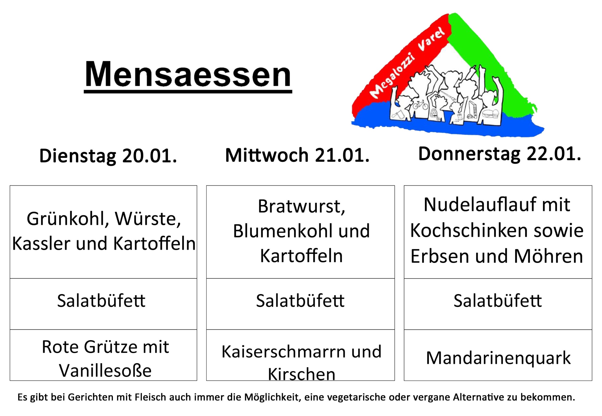 Mensaplan vom 20. bis zum 22. Januar 2026