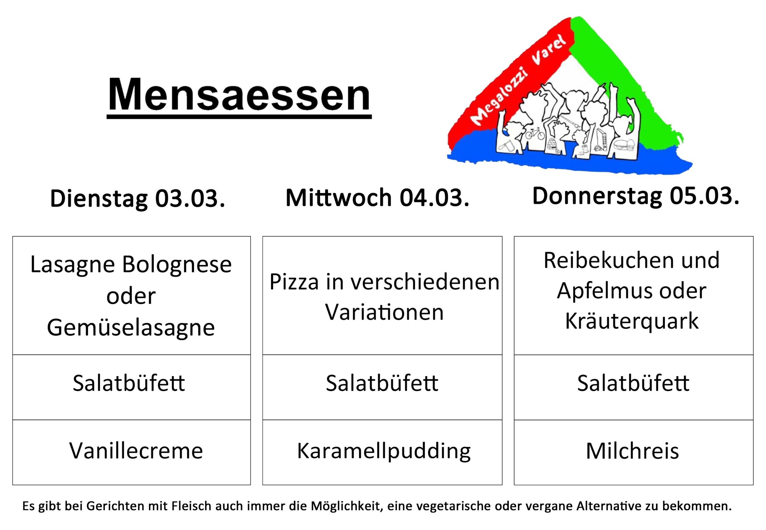 Mensaplan vom 03. bis zum 05. Februar 2026